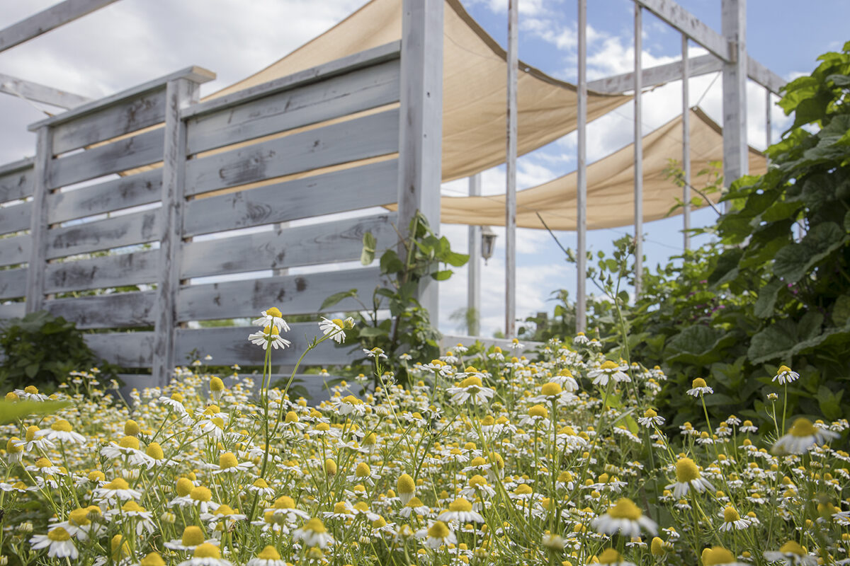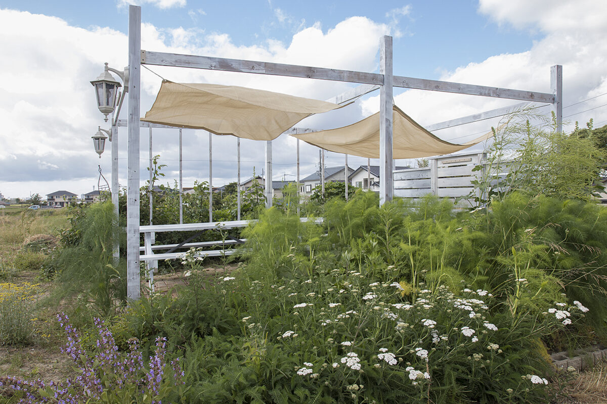 パーゴラというとパッと思い浮かぶ、定番のシンプルな形がありますね。そのままでも素敵なのですが、アンクルペペでは一工夫加えてアンティーク風のパーゴラをデザイン開発しました。構造に使うビスは通常はなるべく見えないように隠すものですが、装飾ビスを使ってあえて見せるようにしています。